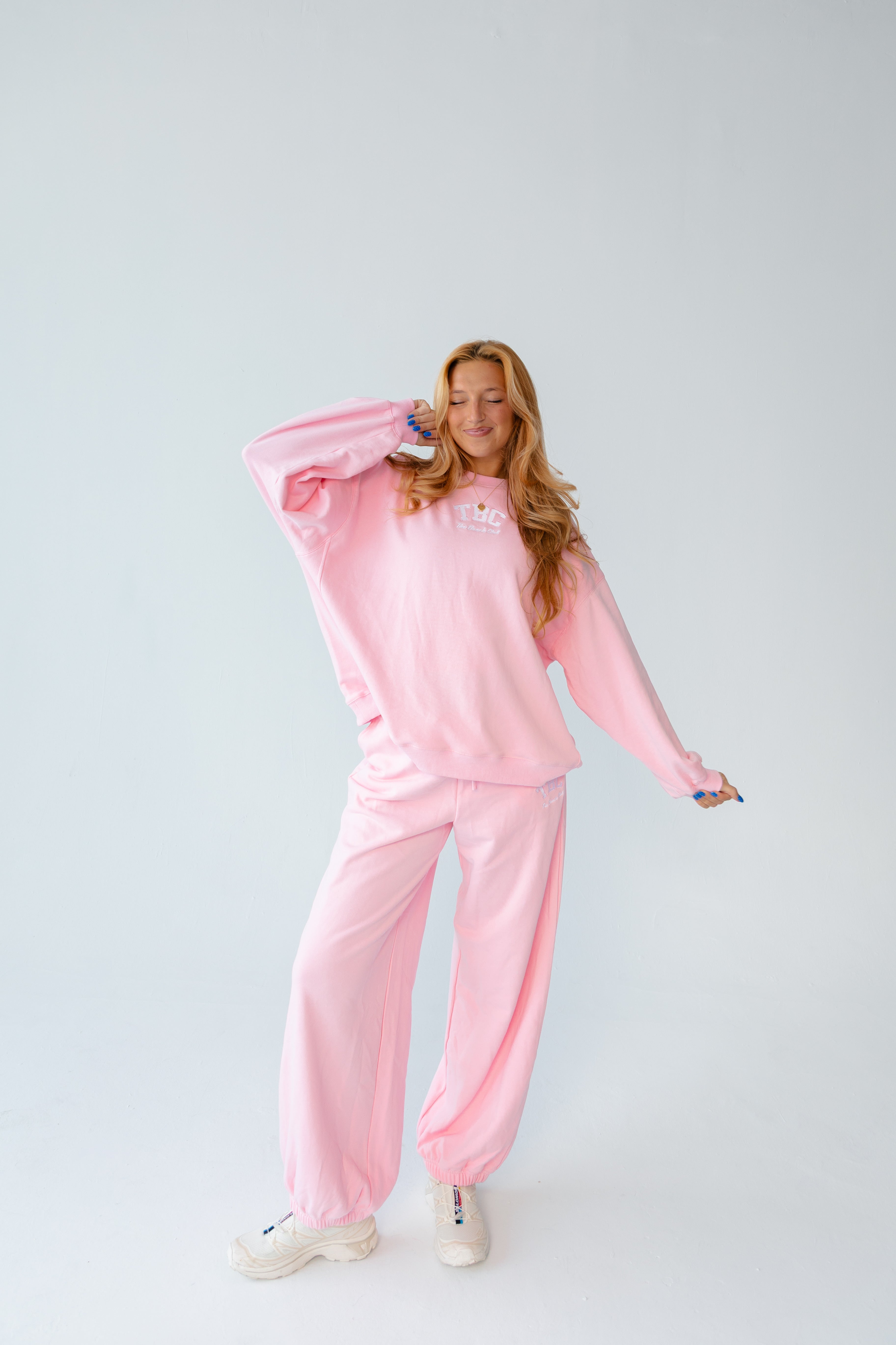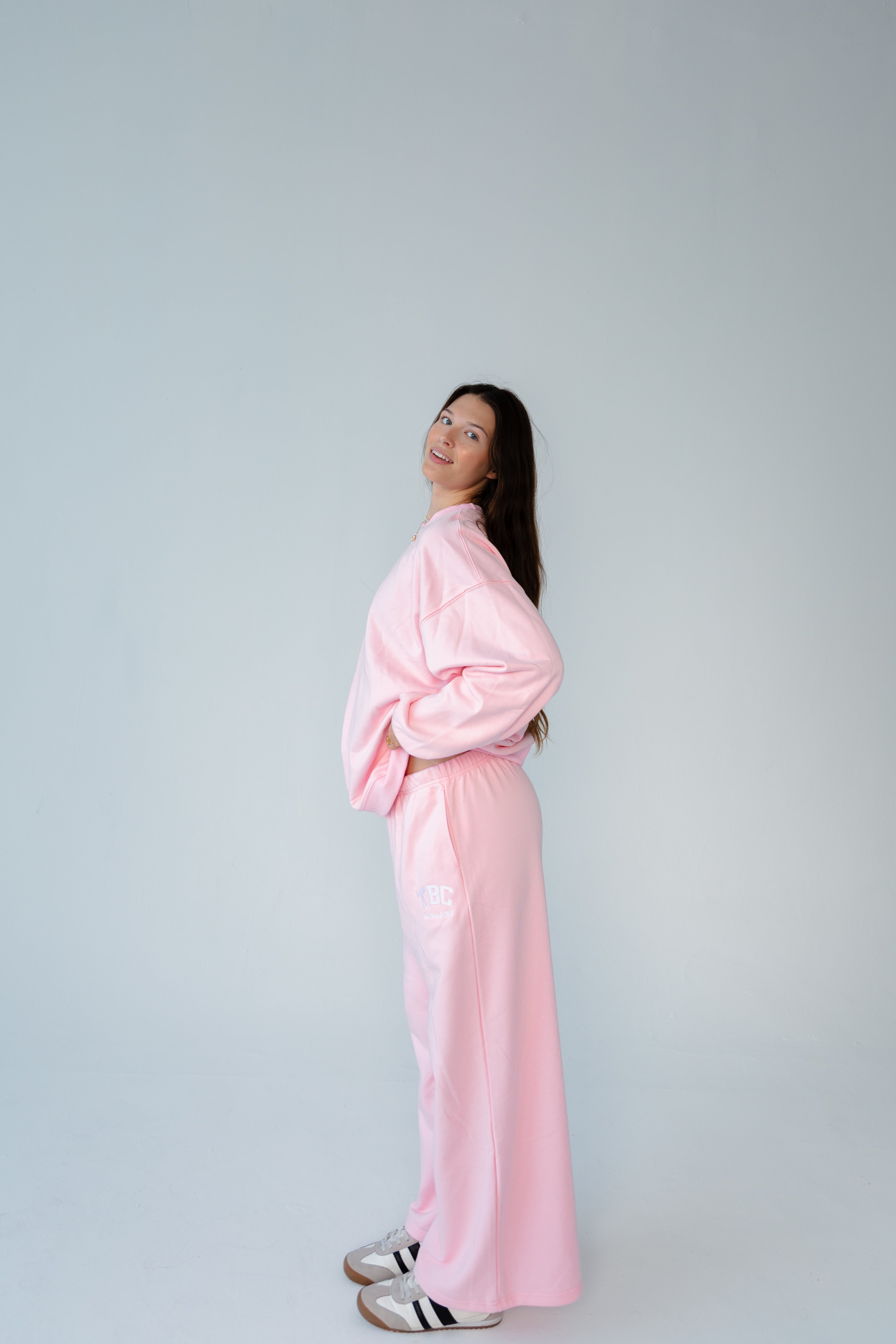 Our Baby Pink Staple Sweatpants are designed with a loose, relaxed fit through the thigh and leg for everyday comfort that looks intentional. Made from 85% cotton and 15% polyester with a breathable French terry interior, they feel soft, lightweight, and wearable all year.