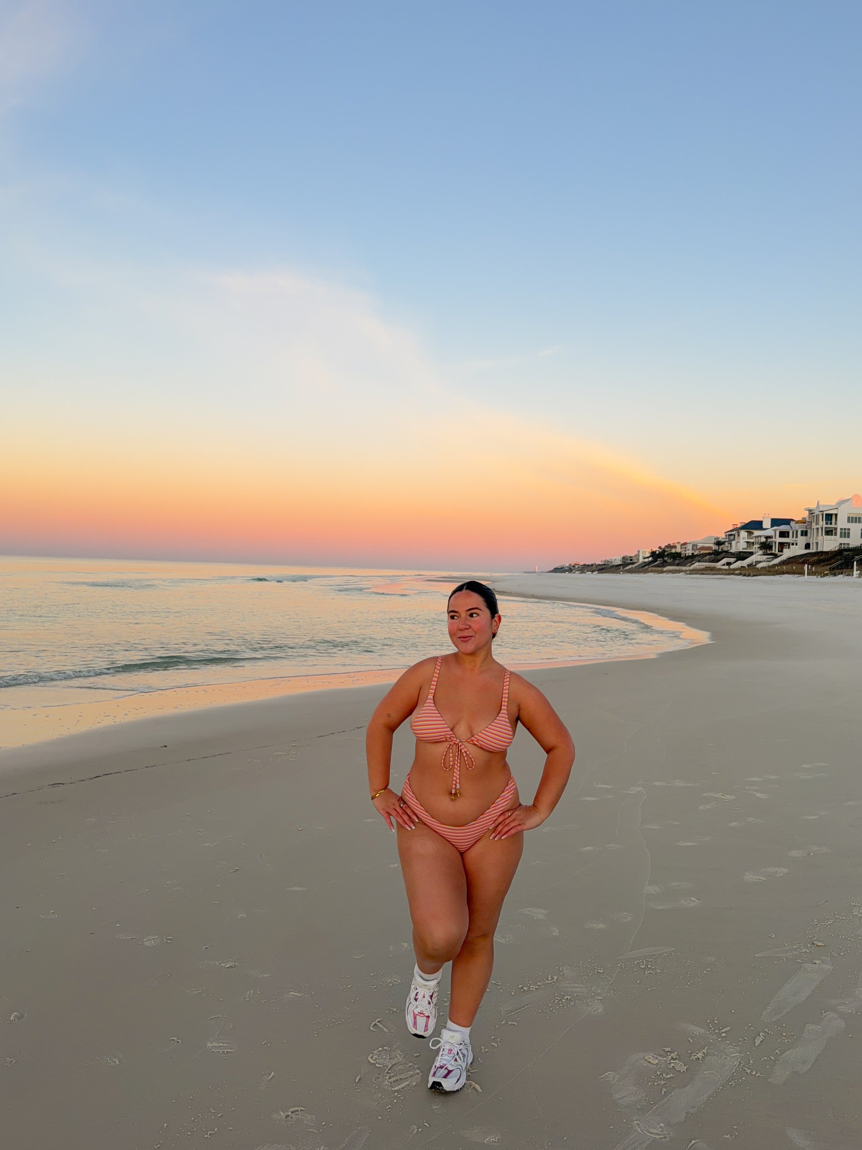 Meet the Striped Starfish Top ~ a classic, tie-front triangle bikini with adjustable ties for an easy, customizable fit. The colorful striped print and starfish charm details add a fun, beachy touch that feels made for sunny days and sunset swims.
