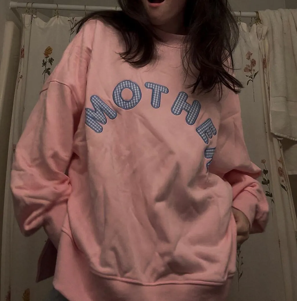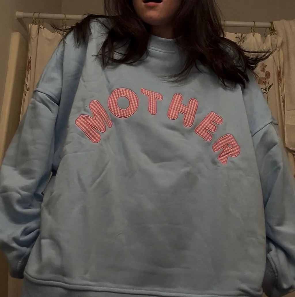 Soft, sweet, and made to wear on repeat. The Mother Boxy Crewneck is a custom cut-and-sew sweatshirt with an oversized, boxy fit that feels effortless but put-together. Designed in a light blue base with a light pink gingham heart and curved “MOTHER” lettering, it is a subtle statement piece for the ones who do it all.